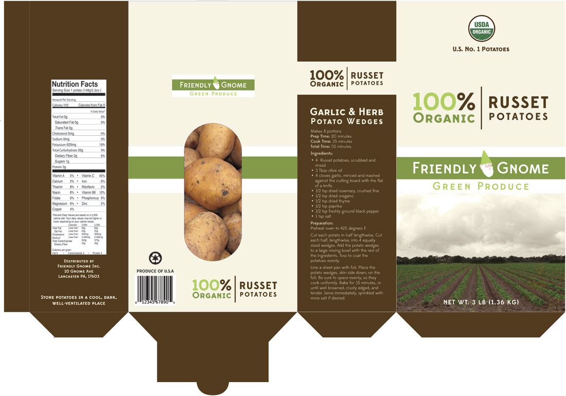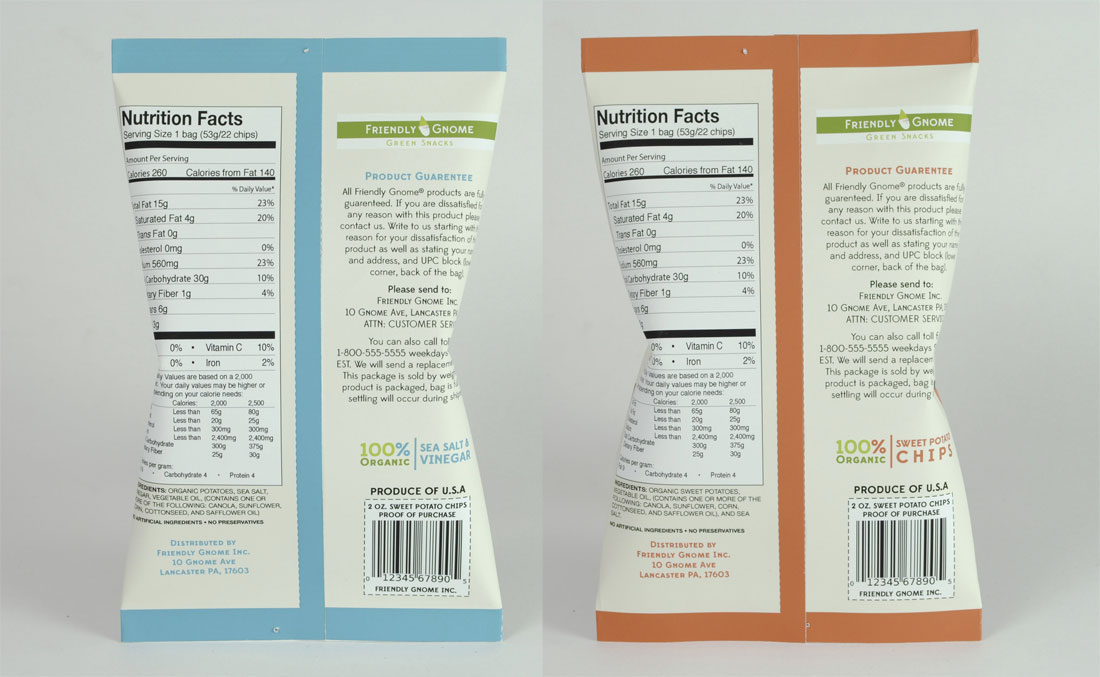 The Friendly Gnome product line is a fictitious brand catering to health-conscious people. The Friendly Gnome Green Snacks line is an offshoot of the normal brand.