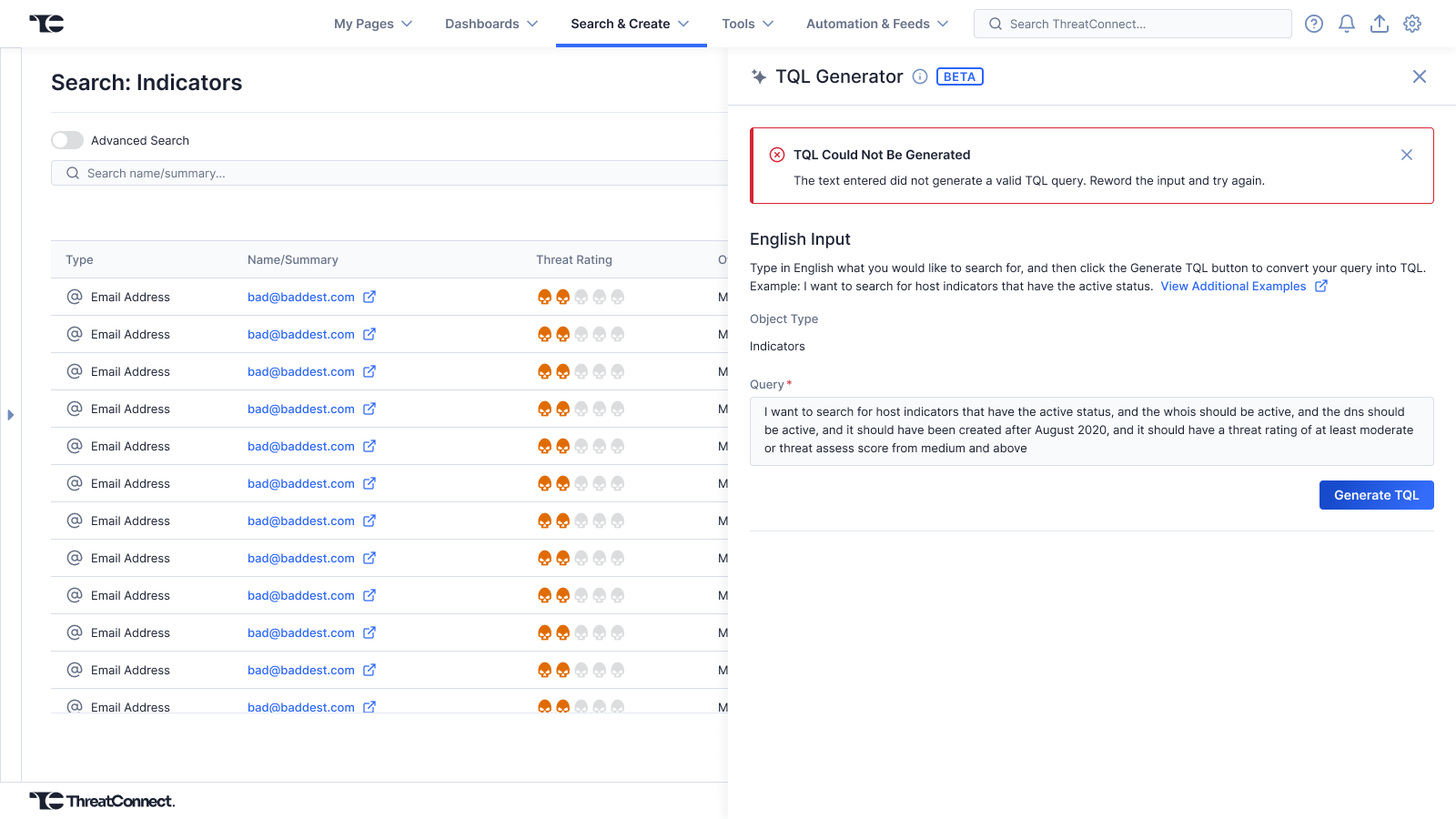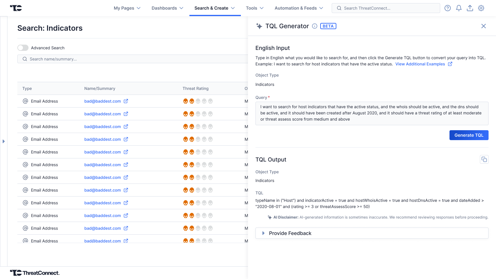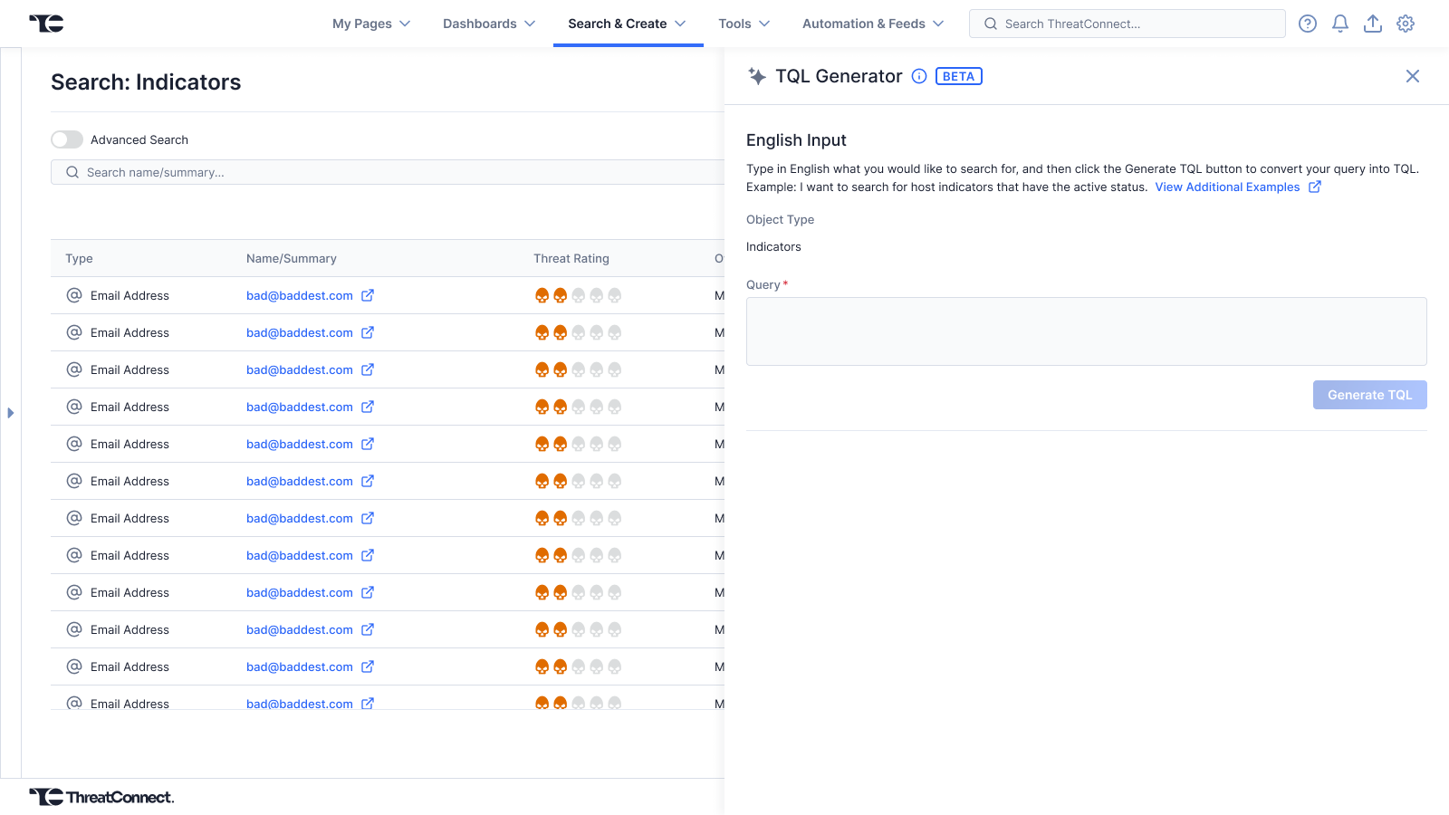 TQL is a proprietary, powerful SQL-based query language used within the ThreatConnect threat intelligence platform (TIP), which allows users to write their own advanced queries. Users have the option to create simple queries using a normal filter interface that doesn't involve manually writing TQL.