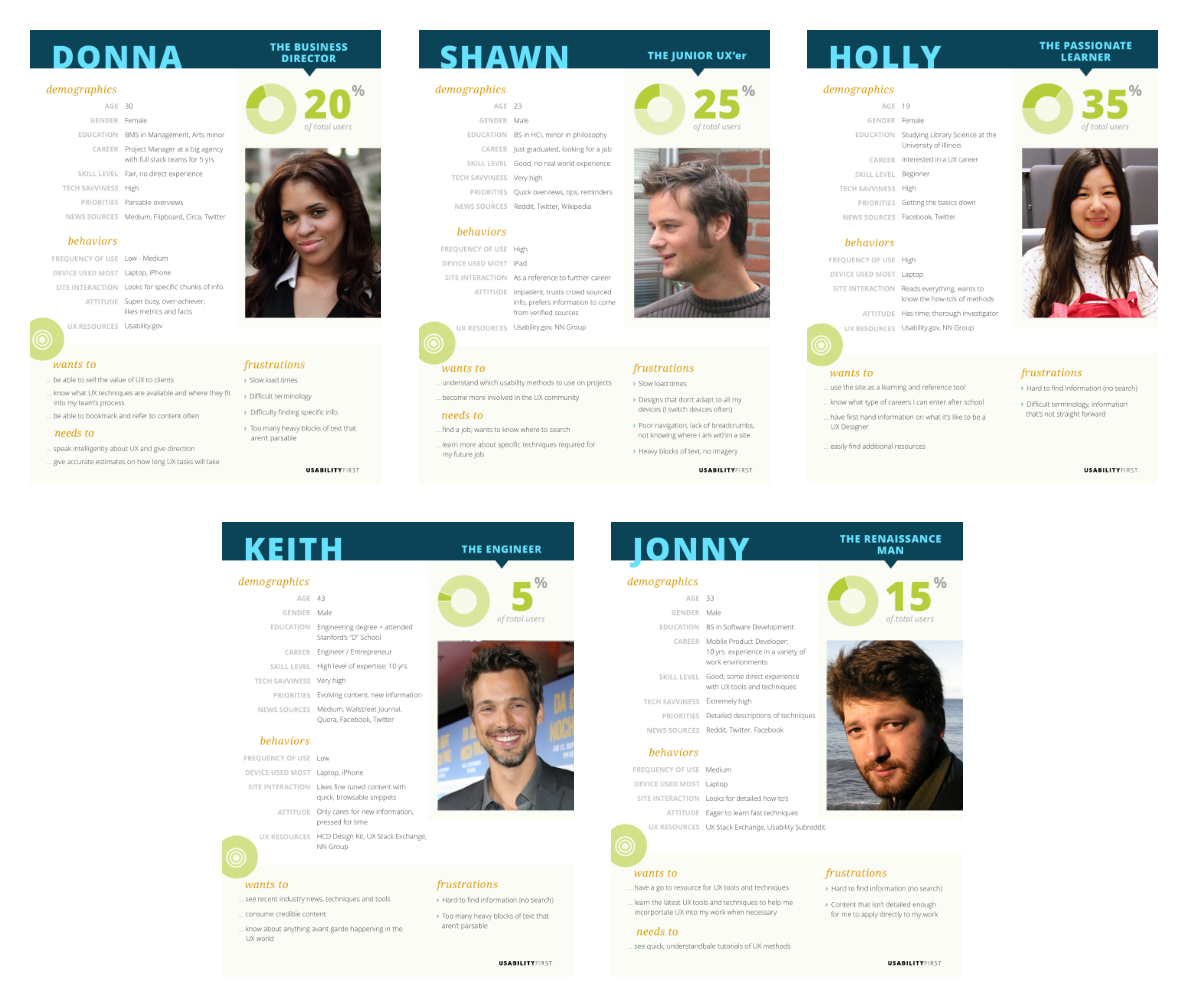 - Personas were created using the information we gained from the analytics and competitive analysis.