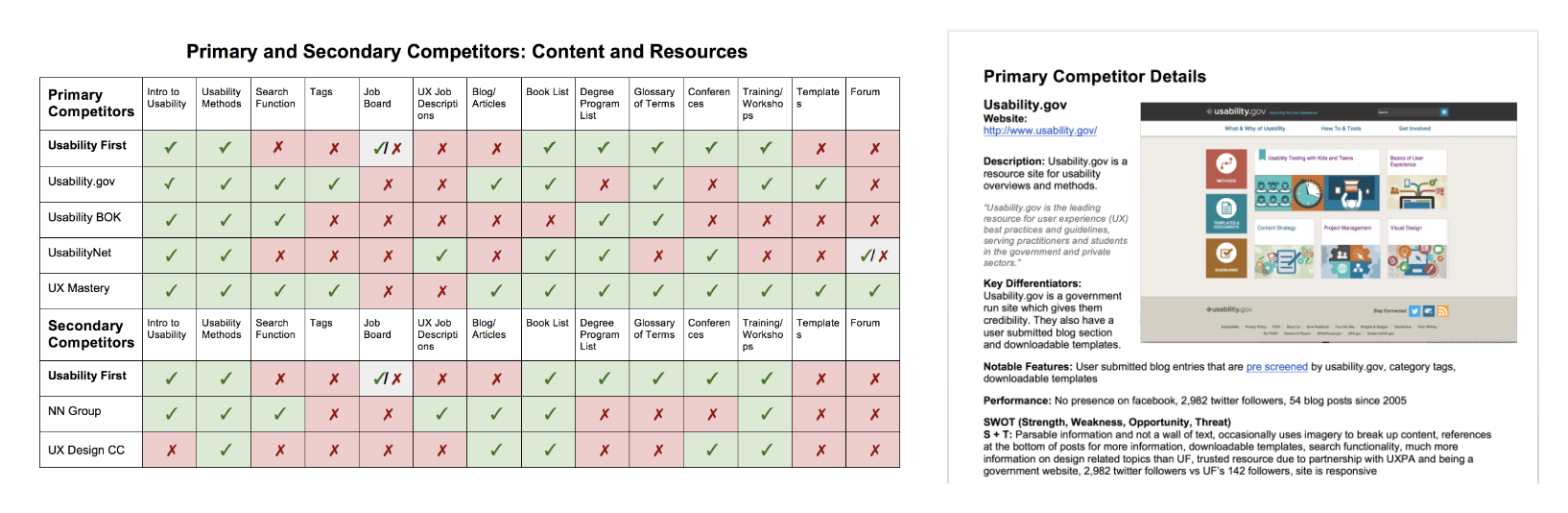 - Performing a competitive analysis helped with understanding where Usability First stood in relation to competition.