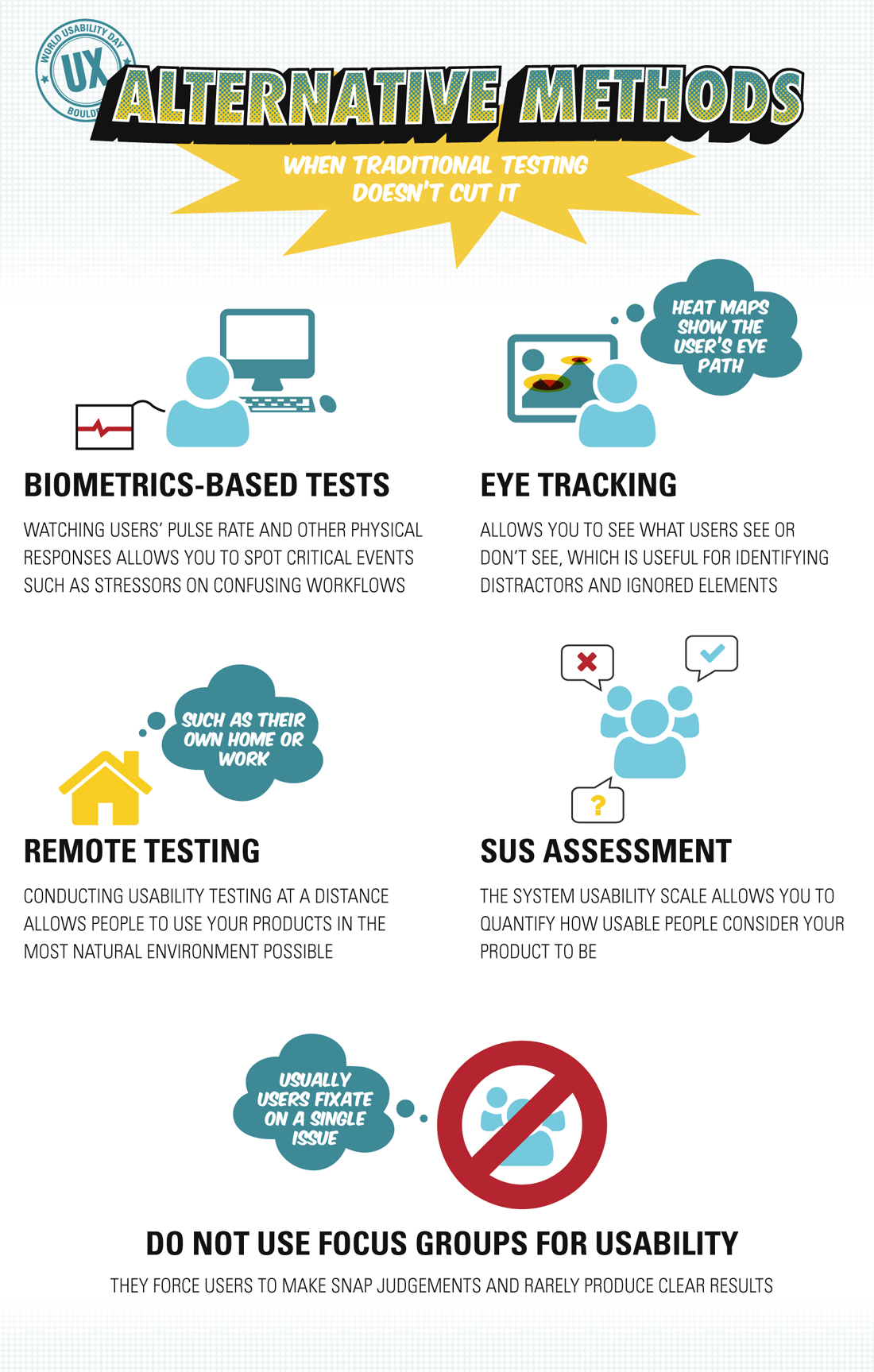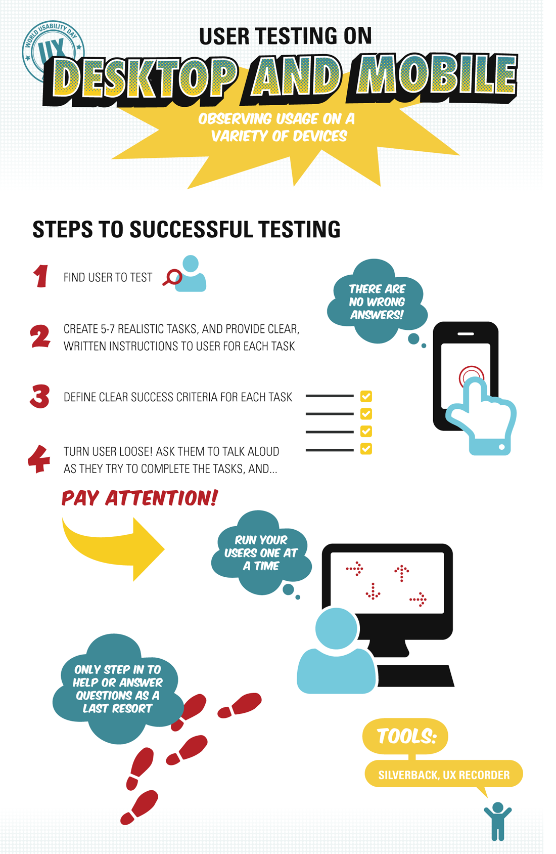 These were created for the World Usability Day event while working at Foraker Labs. We chose a comic book theme for the event.
